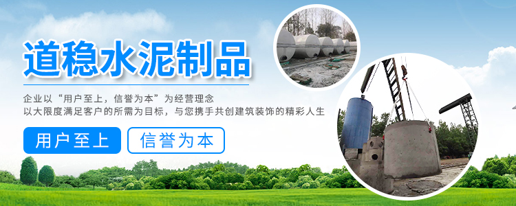 合肥市肥西縣道穩水泥制品廠是一家集設計、與制造各類水泥系列制品的專業廠家。產品有:水泥化糞池、預制混凝土化糞池、水泥檢查井、成品混凝土隔油池、組合裝配式蓄水池、混凝土涵管等產品;產品具有安裝便捷、施工安全、施工周期短、承壓力強、堅固耐用、抗滲透性能好等特點,并且造價低、防滲漏、耐腐蝕,綠色環保,是混凝土制品在建筑工程應用中的重大技術創新,深受廣大房地產商和建筑工程公司客戶青睞。